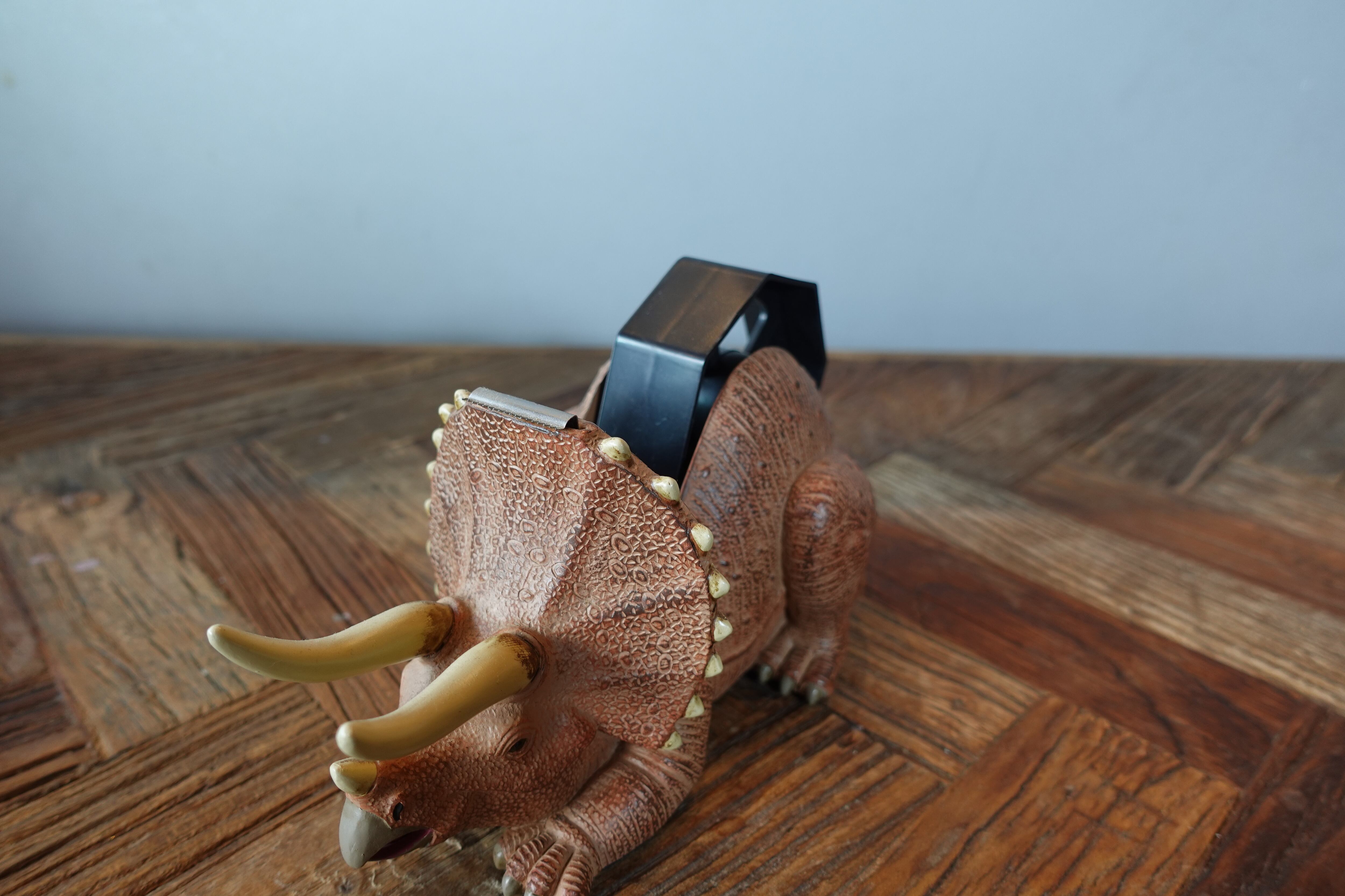 テープディスペンサー(トリケラトプス) SR-4092は、重厚感バツグンのトリケラトプスのフォルムが魅力的なアイテムです。このディスペンサーは、デスクや作業スペースにノスタルジックな恐竜の雰囲気をプラスしながら、テープの使用を便利にサポートします!見た目のユニークさは、作業の楽しい気分を引き立ててくれるでしょう。