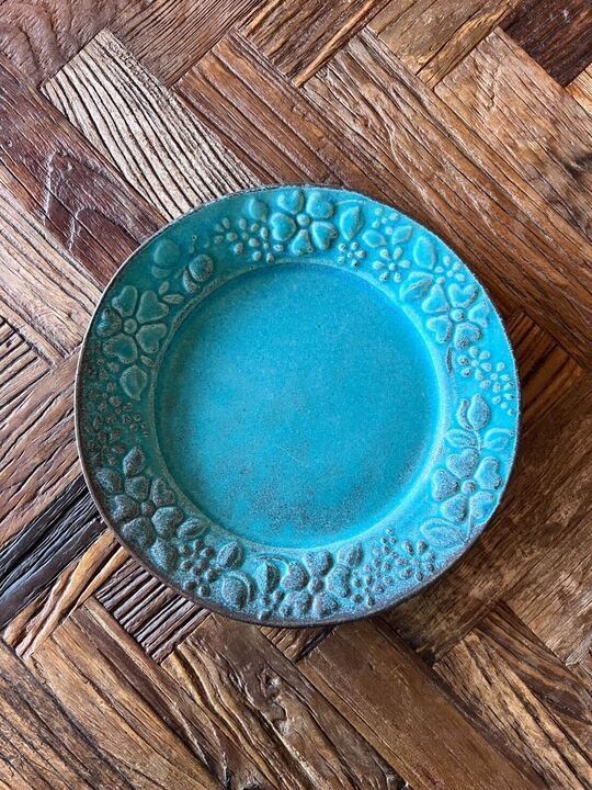 益子焼 ガーデン プレート (S)ターコイズは、美しい青緑のトルコブルーに映える華やかな花柄が特徴的なおしゃれなプレートです。このアイテムは、シンプルさの中にも洗練されたデザインがあり、和食器としてだけでなく、サラダやデザートを盛り付けるのにもぴったり!お家カフェや特別な食事シーンで主役になること間違いなしです。